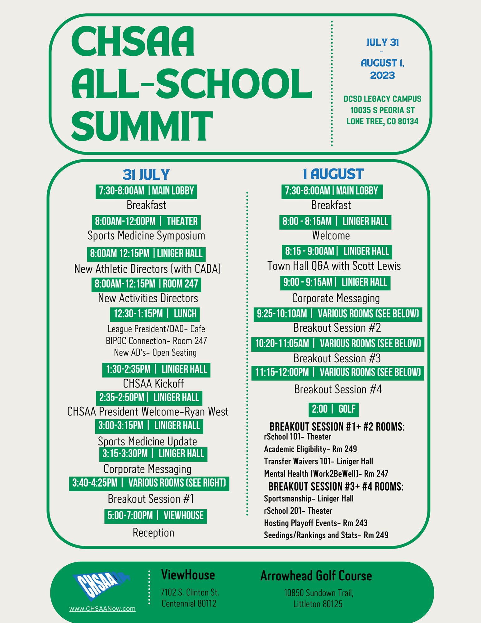 CHSAA All School Summit set for July 31 & Aug. 1 Colorado High
