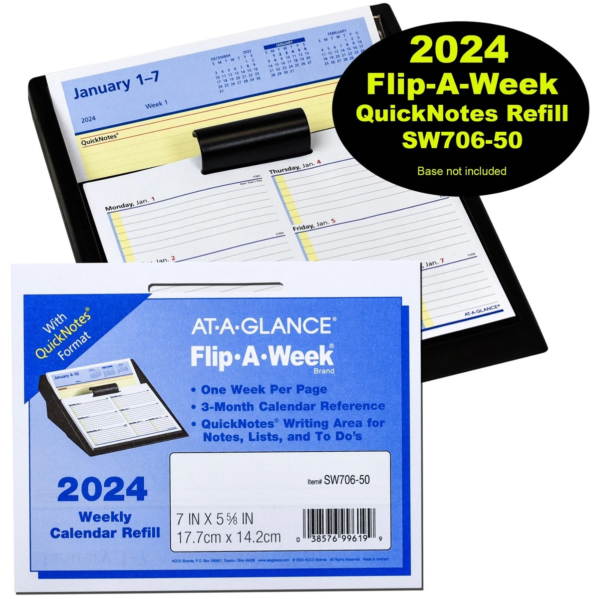 2024 At A Glance QuickNotes SW706 50 Flip A Week Calendar Refill